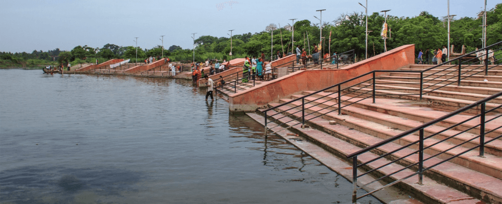 Naimisharanya, a revered Hindu pilgrimage site, is situated in the Sitapur district of Uttar Pradesh, India, approximately 94 km from Lucknow, along the banks of the Gomti River. This sacred forest, also known as Naimisha (Sanskrit: नैमिष), holds deep significance in Hindu mythology and is frequently mentioned in ancient scriptures, including the Mahabharata, the Ramayana, and various Puranic texts. The site is home to several important temples, notably the Shri Naimishnath VishnuTemple, which uniquely blends South Indian architectural elements on the exterior with North Indian influences in its interior design. According to Hindu mythology, Naimisharanya is the location where the divine wheel (Chakra) of Lord Brahma struck the earth, creating a sacred water body. Strategically located at the confluence of roads from Sitapur and Khairabad, Naimisharanya lies 32 km from Sitapur, 42 km from Sandila railway station, and is positioned on the left bank of the Gomti River. Also referred to as Nimsar or Nimkhar, it continues to be a major pilgrimage destination, attracting devotees and spiritual seekers from across India.