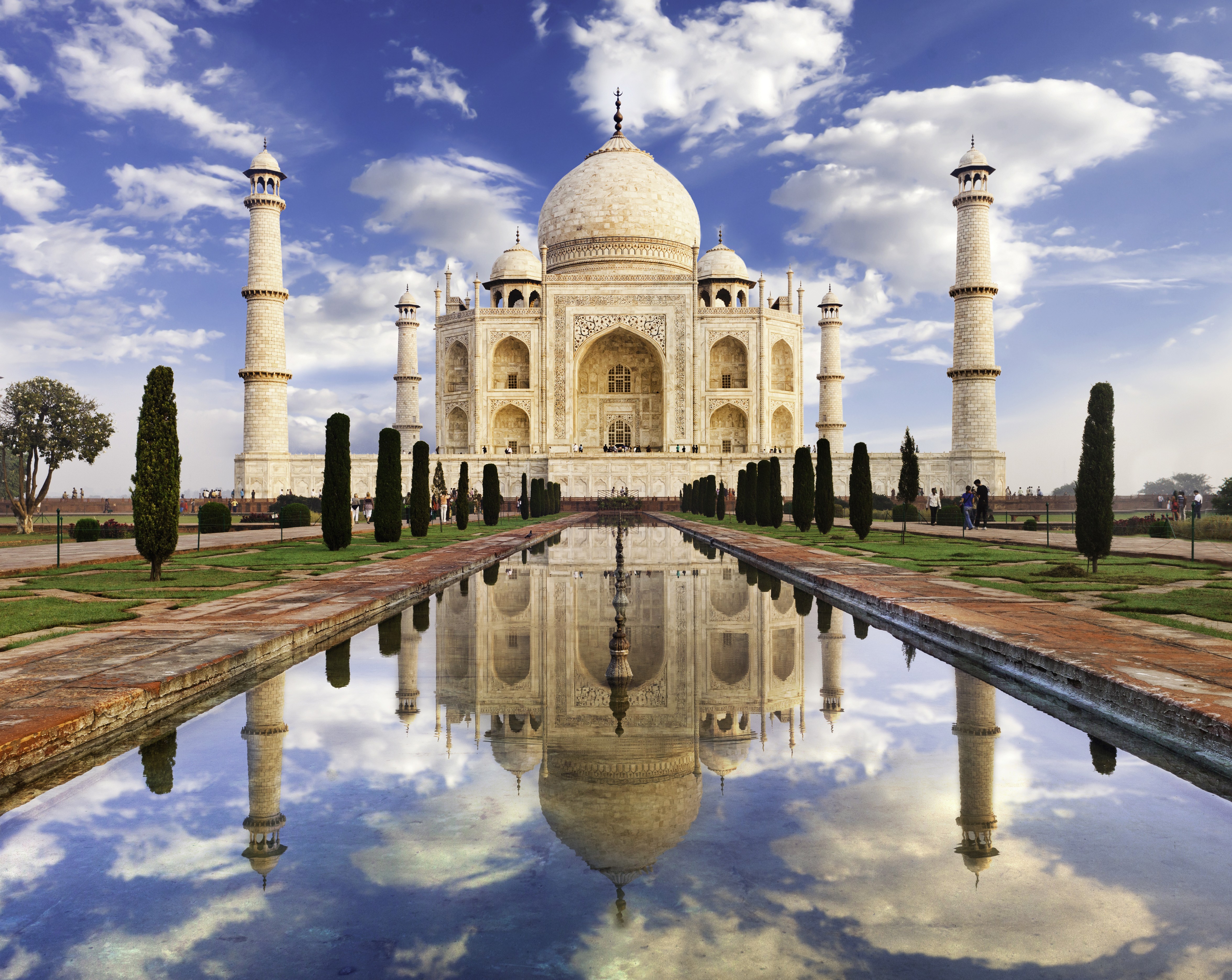 The Taj Mahal (Crown of the Palace) is an ivory-white marble mausoleum on the right bank of the river Yamuna in Agra, Uttar Pradesh. The Taj Mahal was designated as a UNESCO World Heritage Site in 1983 for being "the jewel of Islamic art in India and one of the universally admired masterpieces of the world's heritage". It is regarded as one of the best examples of Mughal architecture and a symbol of Indian history. Agra Fort is a historical fort in the city of Agra in India. It was the main residence of the emperors of the Mughal Dynasty till 1638, when the capital was shifted from Agra to Delhi. The Agra fort is a UNESCO World Heritage site. It is about 2.5 km northwest of its more famous sister monument, the Taj Mahal. The fort can be more accurately described as a walled city.