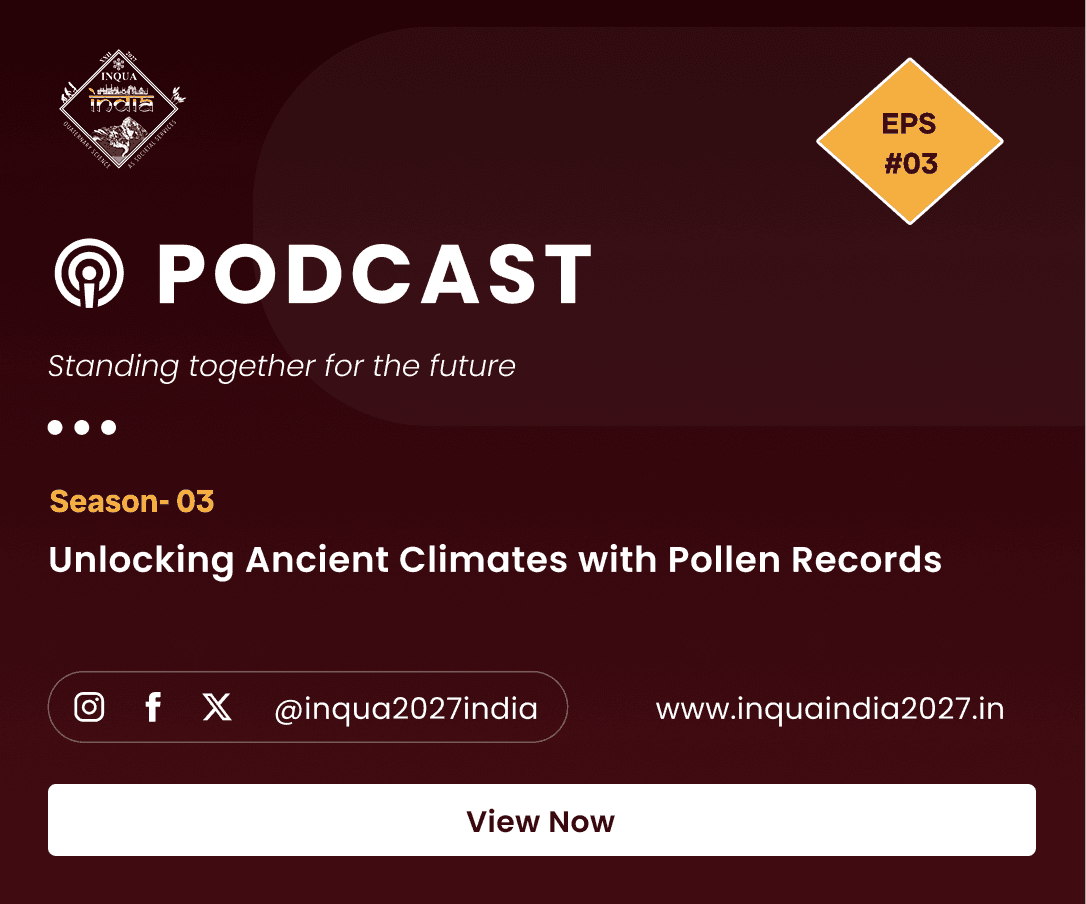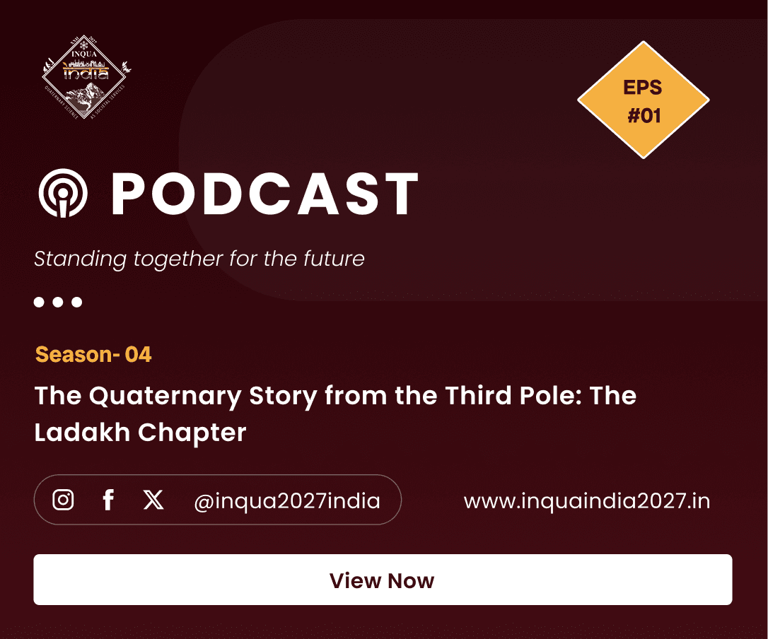 The INQUA India 2027 Podcast Series on Spotify, developed by AOQR- Knowledge Partner for INQUA 2027, is a new initiative aimed at creating awareness about INQUA 2027, India among both the scientific community and the general public. The series seeks to bridge the gap between science and society by simplifying concepts related to Quaternary science and the upcoming INQUA Congress to be hosted in India.